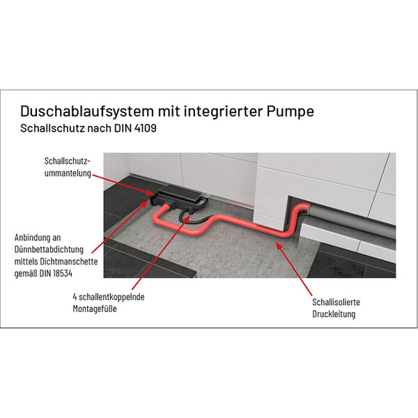 Schallschutz bei Ablaufsystemen mit Pumpe für barrierefreie Duschbereiche