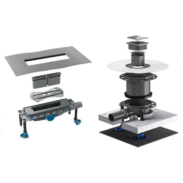 Zertifizierter Schallschutz nach DIN 4109 und VDI 4100 wird außerdem durch schallentkoppelte Montagefüße sowie geprüfte Schallschutzmatten und Montagehilfen passend zu den Ablaufgehäusen sichergestellt. Ein weiterer Vorteil: eine sichere und einfache Anbindung der Ablaufgehäuse an bauseits verwendete Wärme- bzw. Trittschalldämmung. Über schalldämmende Duschelemente ist es schließlich möglich, effektiven Schallschutz ganz ohne Estrichkonstruktion in der bodengleichen Dusche zu realisieren.