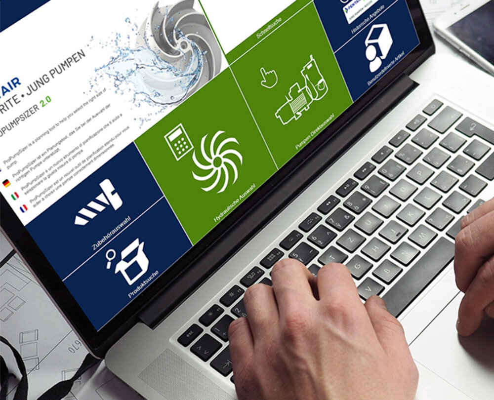 Free of charge pump selection tool for iOS and Android specialist craftsmen users.
