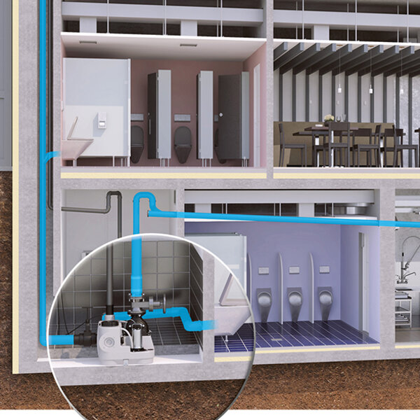 Secondo la norma EN 12056 Parte 4, l'uso di sistemi doppi è obbligatorio nei condomini e negli immobili a uso commerciale dove l'afflusso di acque reflue non deve essere interrotto. I sistemi doppi funzionano con due unità di pompaggio che si alternano o lavorano insieme, come nel caso di grandi volumi di acque reflue. Se una pompa è difettosa, la seconda assicura che l'edificio possa continuare a essere drenato.
