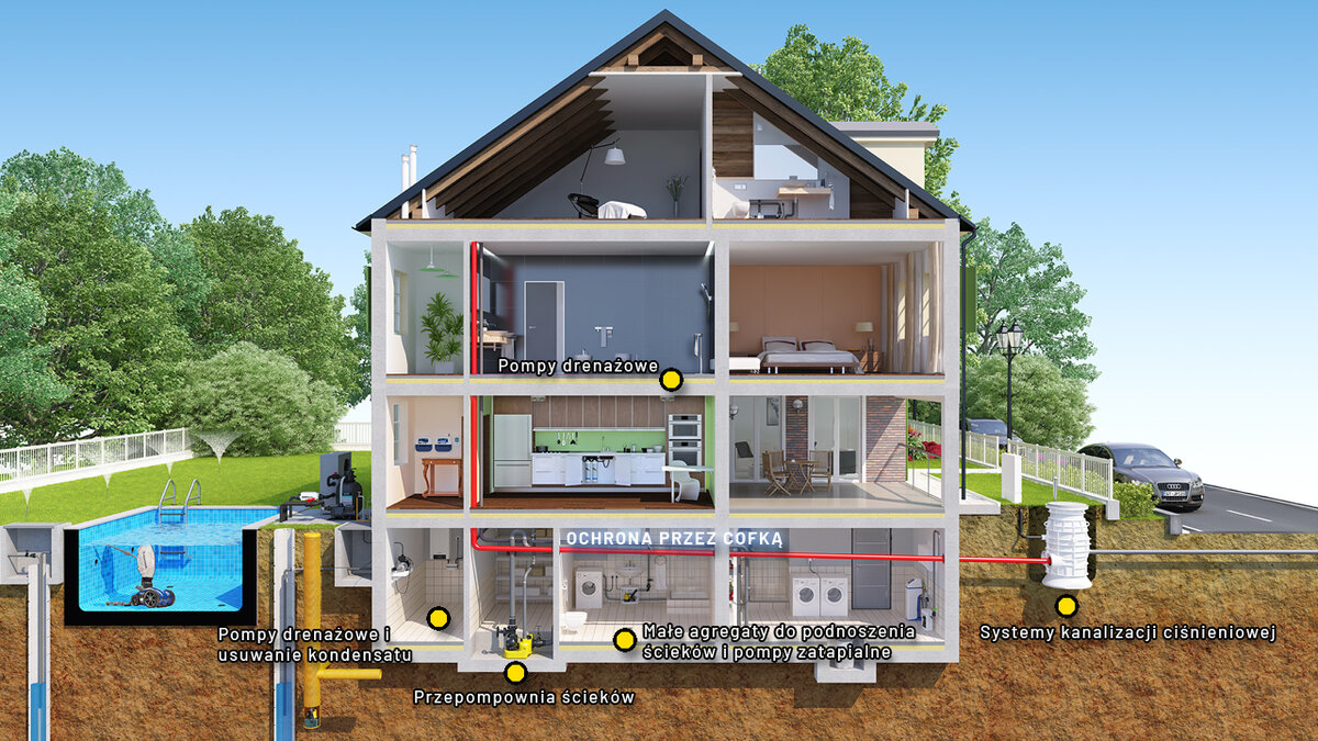 Pompy zatapialne są wykorzystywane do odprowadzania ścieków i ochrony przed cofaniem się wody niezależnie od tego, czy są zainstalowane stacjonarnie w studzience odpływowej lub rząpi w piwnicach, pralniach, magazynach, czy w specjalnych zbiornikach. Wszędzie tam, gdzie ścieki gromadzą się poniżej poziomu cofki i muszą być przepompowane do kolejnego przewodu zbiorczego, urządzenia podnoszące odprowadzają je bezpiecznie, niezawodnie i zgodnie z normami.